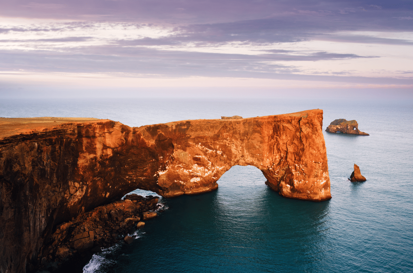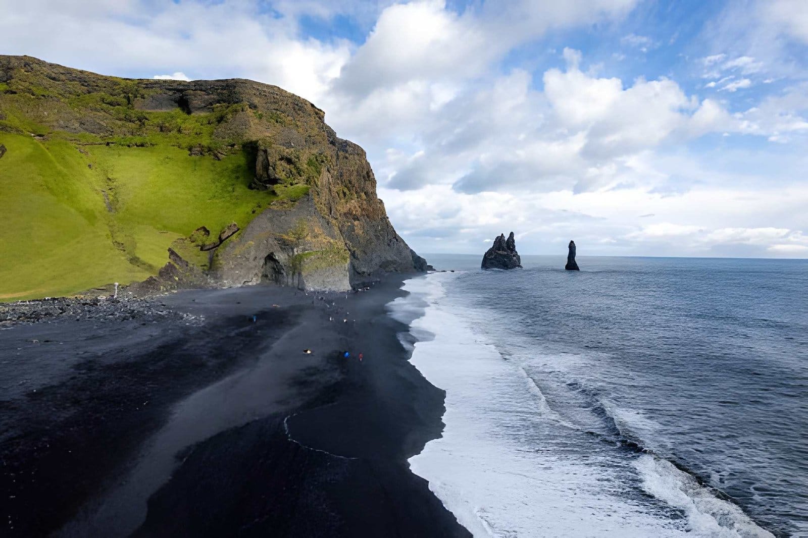 The day closes with the South Coast's most theatrical sequence. Dyrhólaey, a dramatic headland at Iceland's southernmost tip, offers sweeping panoramic views along the black sand coastline and out across the open Atlantic. From there, the tour reaches Reynisfjara, Iceland's most celebrated black sand beach - framed by towering basalt columns and the sea stacks of Reynisdrangar standing offshore in the surf. Your guide will give a full safety briefing at the water's edge: this is a beach with genuine power. The coastal village of Vík rounds off the day before your private vehicle returns you to your Reykjavík accommodation.