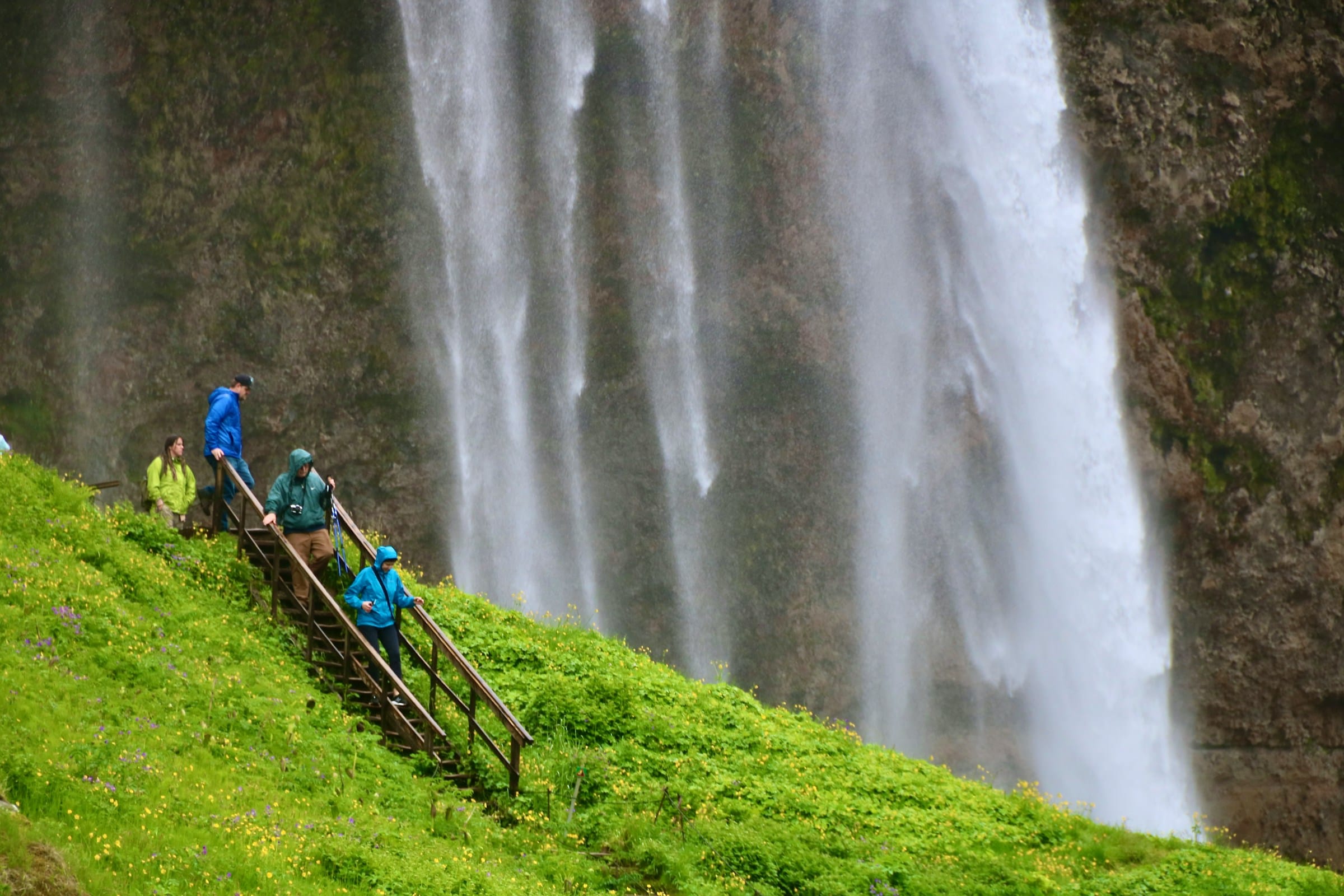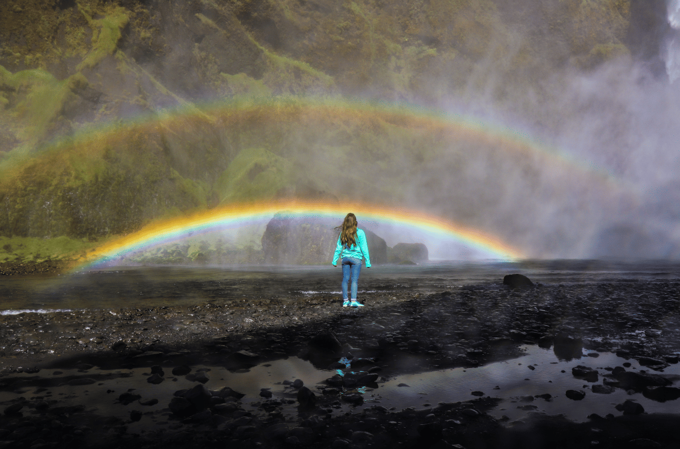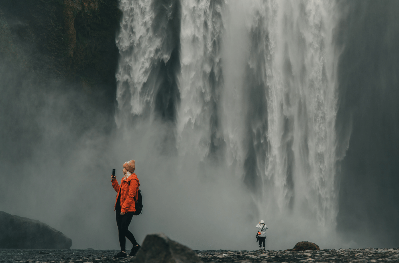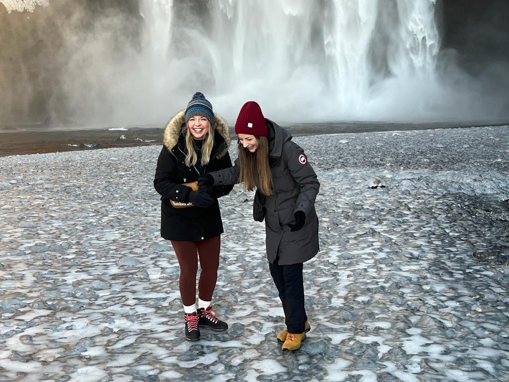 The tour heads southeast from the capital along the Ring Road, and the first chapter belongs to the waterfalls. Seljalandsfoss is one of Iceland's most beloved cascades, and uniquely, a path leads directly behind the curtain of falling water - one of the rare places in the world where you can walk inside a waterfall and look out. Just minutes away, Gljúfrabúi is a hidden world of its own: a powerful waterfall concealed inside a narrow rock canyon, accessible only by stepping through a gap in the cliff face. It is one of the South Coast's most rewarding surprises, visited by only a fraction of those who stop at Seljalandsfoss.